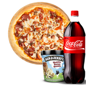 1 Pizza Méga au choix + 1 Ben & jerry's 500ml + 1 Coca cola 1.25l.