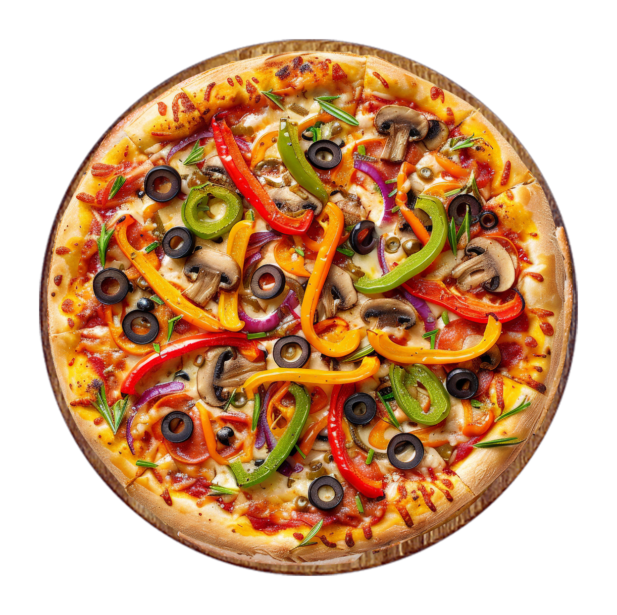 Sauce tomate, fromage, champignons, poivrons, artichauts, olives.