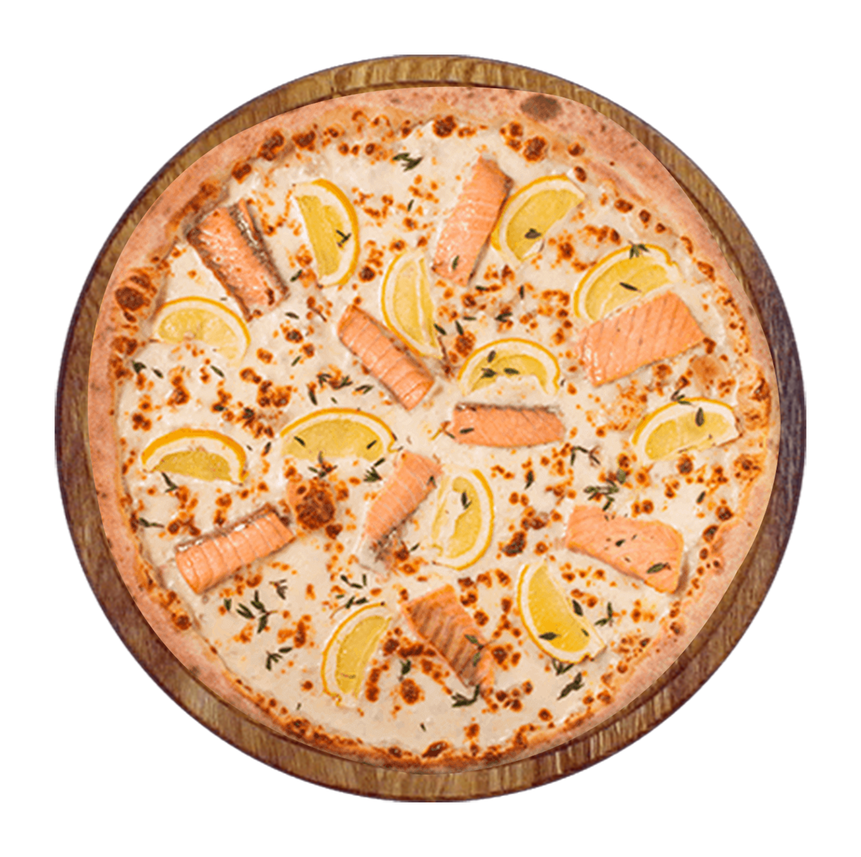Sauce tomate, fromage, saumon fumé, oeufs de lump, crème fraîche, citron.